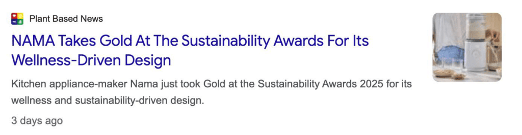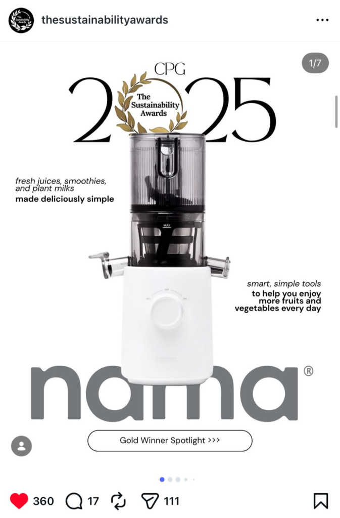 Among this year’s standout recipients is NAMA, awarded Gold in the Consumer Packaged Goods category for positively impacting people’s everyday health and reducing household waste.